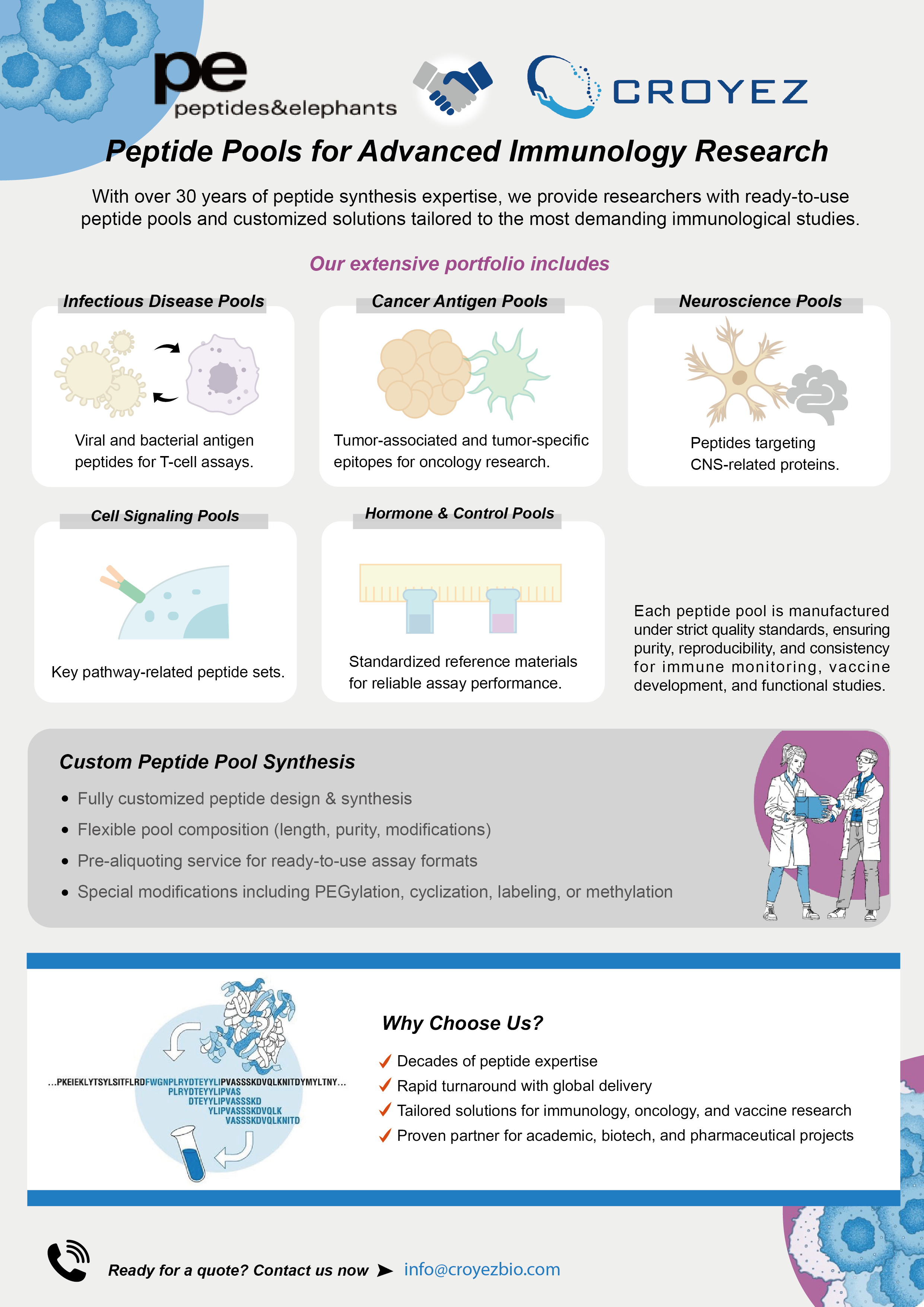 In partnership with Peptides&Elephants, Croyez brings you the complete range of Peptide Pools