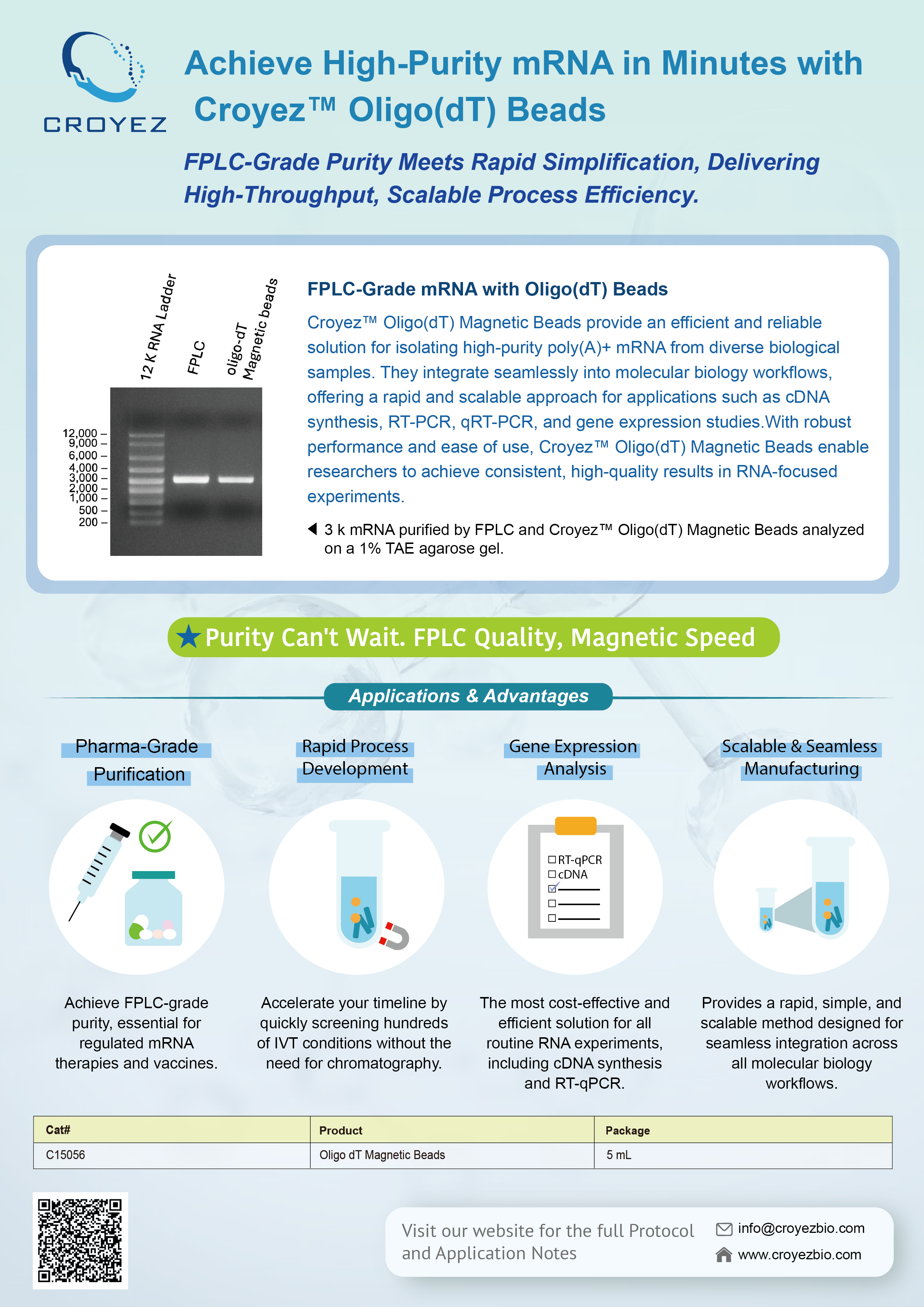 - ✩NEW✩- Achieve High-Purity mRNA in Minutes with Croyez™ Oligo(dT) Beads