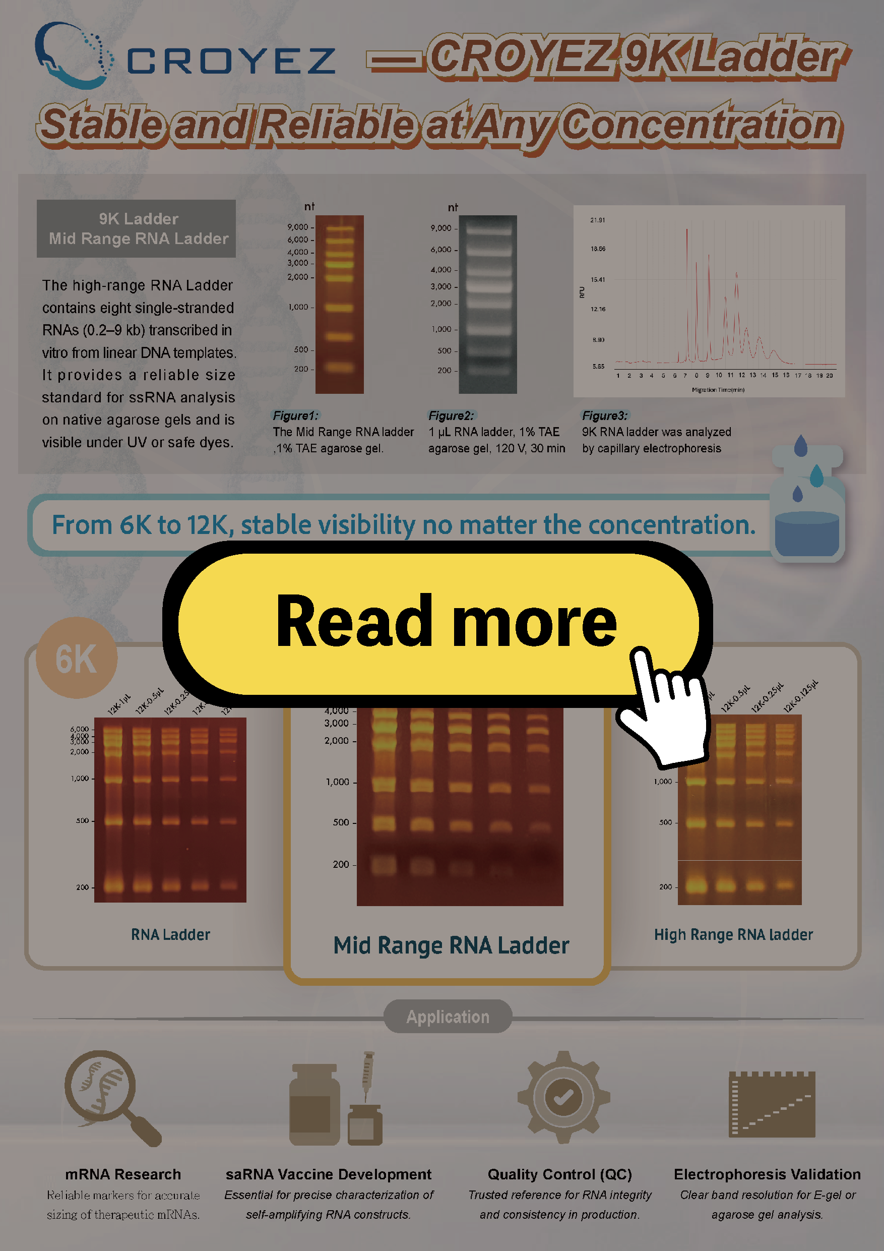Like DNA ladders, RNA ladders consist of fragments with varying sizes. Due to the differential migration rates of RNA and DNA in electrophoresis gels, it's crucial to use the appropriate nucleic acid ladder (RNA or DNA) for accurate analysis.In conclusion, choosing the right RNA ladder is essential for accurate RNA gel electrophoresis. Critical factors for selection involve the size range and the number of bands. Clear distinctions between RNA and DNA ladders are present, and RNA ladders are specifically designed for RNA analysis. Utilizing DNA ladders for RNA analysis is discouraged due to variations in migration rates. It's crucial to select the suitable ladder based on experiment requirements to guarantee precise size determination and reliable results.